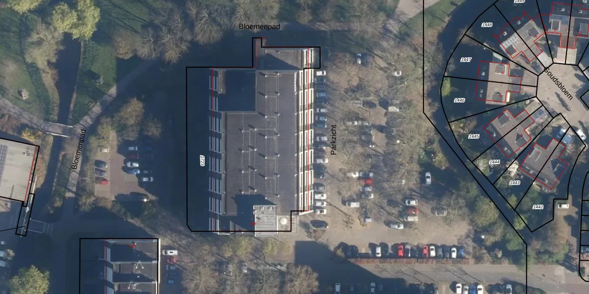 Het perceel waarop Parkzicht 17 staat heeft een oppervlakte van 2357 m². Dit is een zeer groot perceel. De perceeloppervlakte wordt geregistreerd door het Kadaster. Gedetailleerde informatie over de maten van dit perceel kunt u vinden in het rapport Kadastrale kaart met maatvoering van Parkzicht 17.