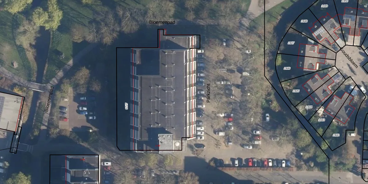 Het perceel waarop Parkzicht 18 staat heeft een oppervlakte van 2357 m². Dit is een zeer groot perceel. De perceeloppervlakte wordt geregistreerd door het Kadaster. Gedetailleerde informatie over de maten van dit perceel kunt u vinden in het rapport Kadastrale kaart met maatvoering van Parkzicht 18.
