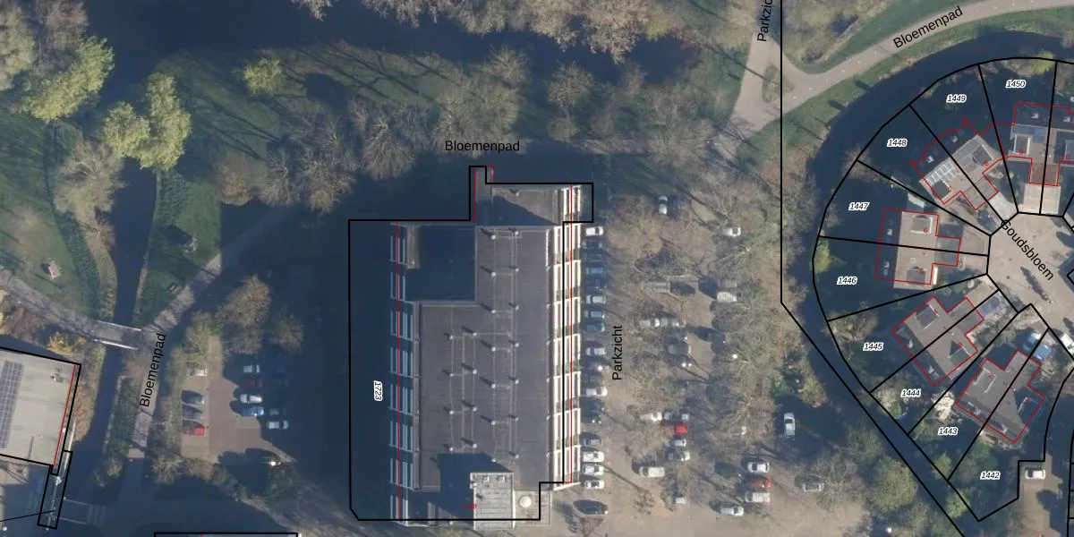 Het perceel waarop Parkzicht 39 staat heeft een oppervlakte van 2357 m². Dit is een zeer groot perceel. De perceeloppervlakte wordt geregistreerd door het Kadaster. Gedetailleerde informatie over de maten van dit perceel kunt u vinden in het rapport Kadastrale kaart met maatvoering van Parkzicht 39.