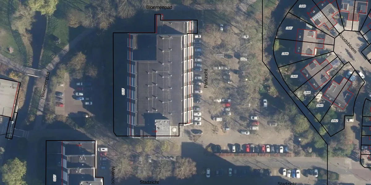 Het perceel waarop Parkzicht 4 staat heeft een oppervlakte van 2357 m². Dit is een zeer groot perceel. De perceeloppervlakte wordt geregistreerd door het Kadaster. Gedetailleerde informatie over de maten van dit perceel kunt u vinden in het rapport Kadastrale kaart met maatvoering van Parkzicht 4.