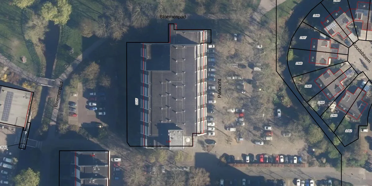 Het perceel waarop Parkzicht 65 staat heeft een oppervlakte van 2357 m². Dit is een zeer groot perceel. De perceeloppervlakte wordt geregistreerd door het Kadaster. Gedetailleerde informatie over de maten van dit perceel kunt u vinden in het rapport Kadastrale kaart met maatvoering van Parkzicht 65.