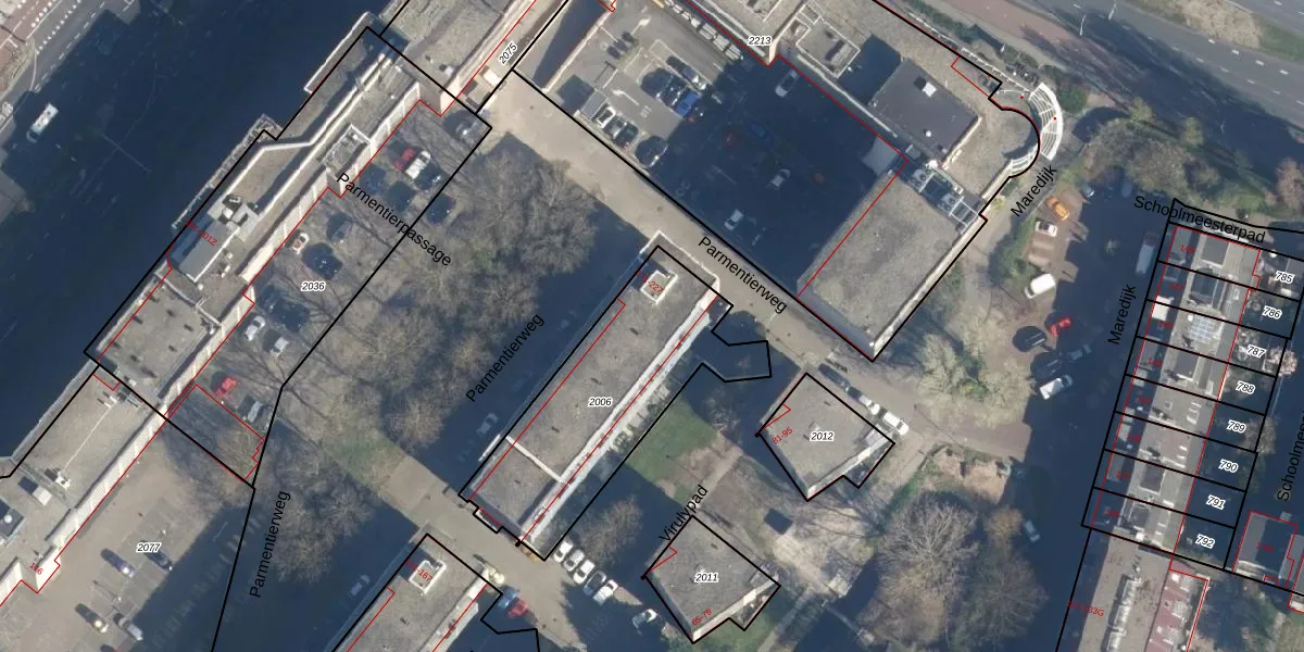 Parmentierweg 203 is gelegen op kadastraal perceel LDN01L2006. Deze kadastrale aanduiding is uniek en wordt gebruikt door het Kadaster om eigendomsrechten en andere zakelijke rechten vast te leggen. Het perceel maakt onderdeel uit van de kadastrale gemeente Leiden.