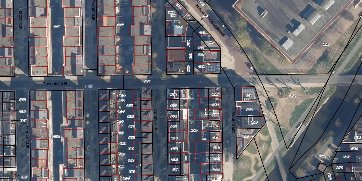 Het perceel waarop Pascalstraat 19 staat heeft een oppervlakte van 847 m². Dit is een groot perceel. De perceeloppervlakte wordt geregistreerd door het Kadaster. Gedetailleerde informatie over de maten van dit perceel kunt u vinden in het rapport Kadastrale kaart met maatvoering van Pascalstraat 19.