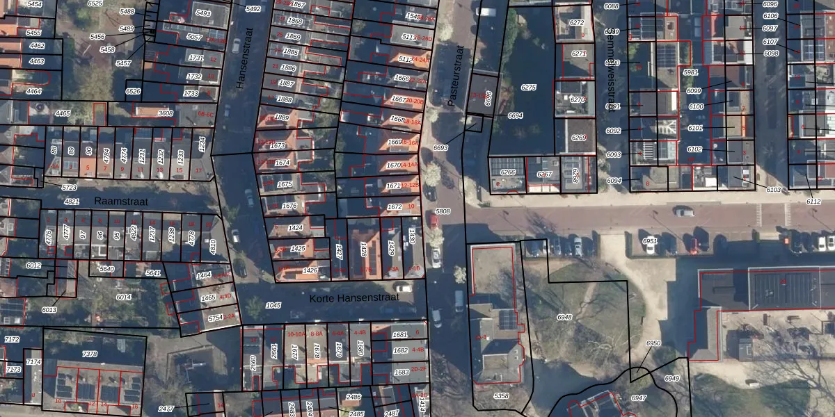 Gebruik de zoekbalk of klik op een perceel voor informatie over de adressen binnen dit perceel.