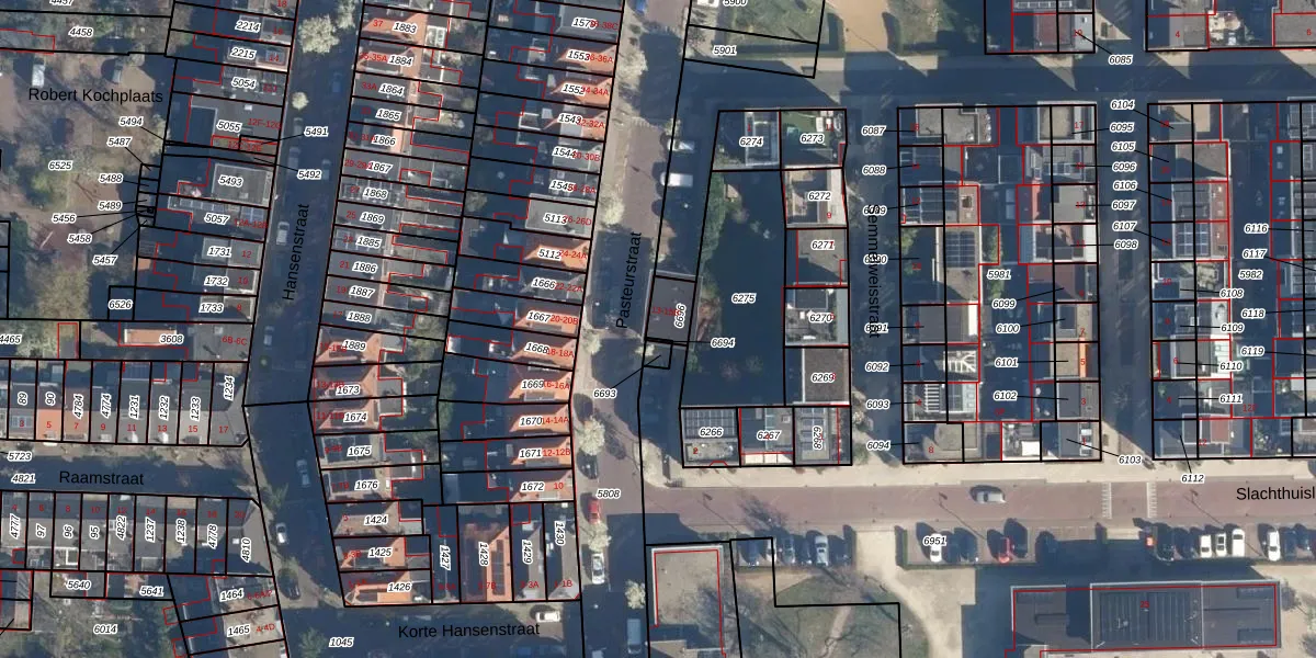 Het perceel waarop Pasteurstraat 13 staat heeft een oppervlakte van 63 m². Dit is een klein perceel. De perceeloppervlakte wordt geregistreerd door het Kadaster. Gedetailleerde informatie over de maten van dit perceel kunt u vinden in het rapport Kadastrale kaart met maatvoering van Pasteurstraat 13.