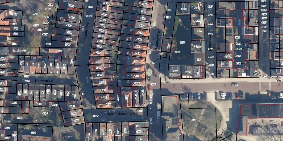 Pasteurstraat 14-A is gelegen op kadastraal perceel LDN01K1670. Deze kadastrale aanduiding is uniek en wordt gebruikt door het Kadaster om eigendomsrechten en andere zakelijke rechten vast te leggen. Het perceel maakt onderdeel uit van de kadastrale gemeente Leiden.