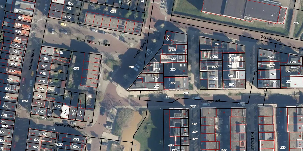 Pasteurstraat 33 is gelegen op kadastraal perceel LDN01K6227. Deze kadastrale aanduiding is uniek en wordt gebruikt door het Kadaster om eigendomsrechten en andere zakelijke rechten vast te leggen. Het perceel maakt onderdeel uit van de kadastrale gemeente Leiden.