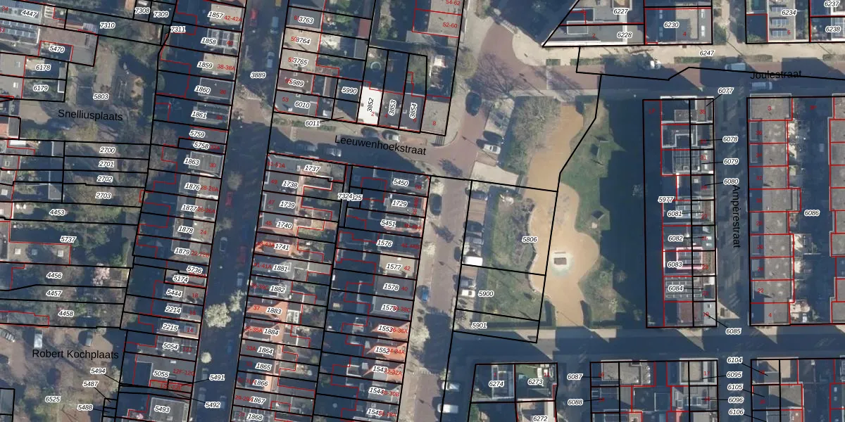 Het adres is gelegen op perceel 1729 in de sectie K en de kadastrale gemeente Leiden. De kadastrale aanduiding is aldus LDN01-K-1729. De gemiddelde perceelgrootte in Leiden is 704,99 m². Dit perceel is kleiner: de perceeloppervlakte bedraagt 77 m². Het grootste perceel in de kadastrale gemeente is 51,8 ha. Het kleinste perceel heeft een oppervlakte van 0 m². Op het perceel liggen in totaal 3 adressen. De laatste wijziging in het de Basisregistratie Kadaster (BRK) was op 28-08-2003.