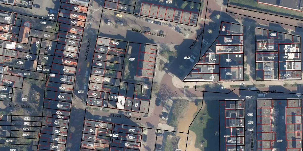 Pasteurstraat 52 is gelegen op kadastraal perceel LDN01K5805. Deze kadastrale aanduiding is uniek en wordt gebruikt door het Kadaster om eigendomsrechten en andere zakelijke rechten vast te leggen. Het perceel maakt onderdeel uit van de kadastrale gemeente Leiden.