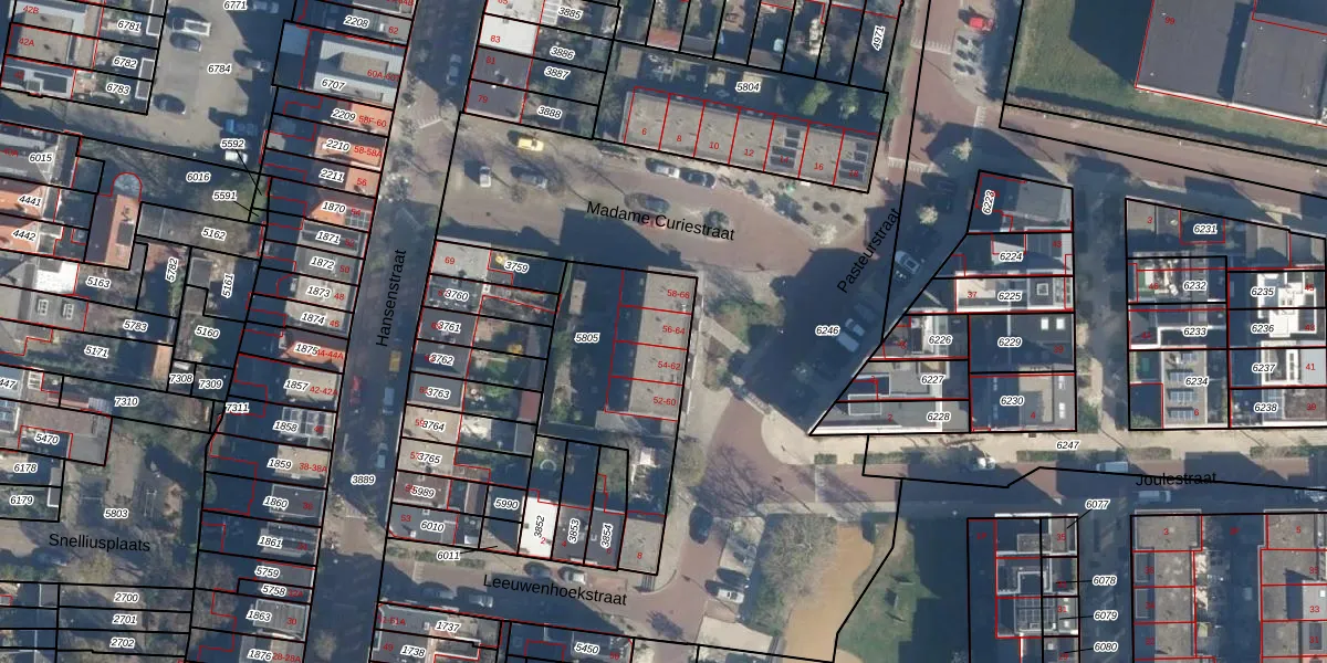 Pasteurstraat 64 is gelegen op kadastraal perceel LDN01K5805. Deze kadastrale aanduiding is uniek en wordt gebruikt door het Kadaster om eigendomsrechten en andere zakelijke rechten vast te leggen. Het perceel maakt onderdeel uit van de kadastrale gemeente Leiden.