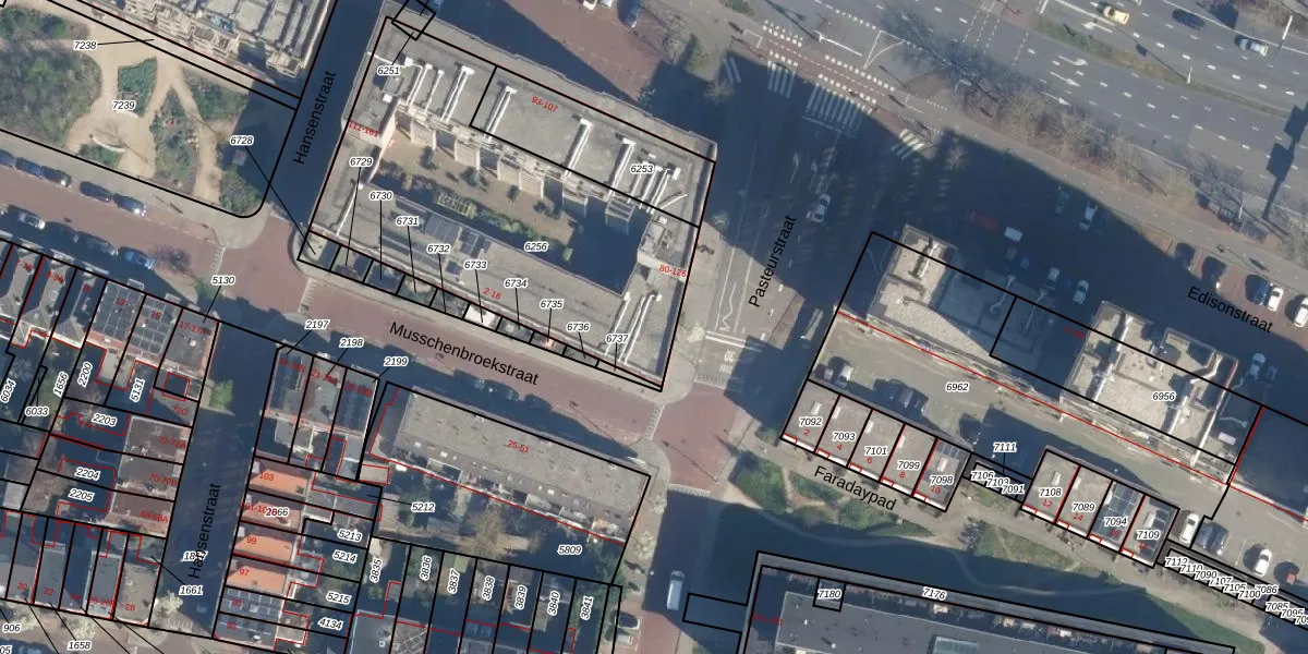 Het perceel waarop Pasteurstraat 80-A staat heeft een oppervlakte van 1597 m². Dit is een zeer groot perceel. De perceeloppervlakte wordt geregistreerd door het Kadaster. Gedetailleerde informatie over de maten van dit perceel kunt u vinden in het rapport Kadastrale kaart met maatvoering van Pasteurstraat 80-A.