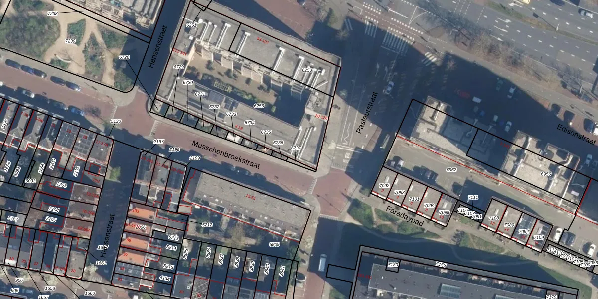 Het perceel waarop Pasteurstraat 80-B staat heeft een oppervlakte van 1597 m². Dit is een zeer groot perceel. De perceeloppervlakte wordt geregistreerd door het Kadaster. Gedetailleerde informatie over de maten van dit perceel kunt u vinden in het rapport Kadastrale kaart met maatvoering van Pasteurstraat 80-B.