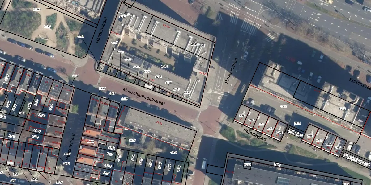 Het perceel waarop Pasteurstraat 80-E staat heeft een oppervlakte van 1597 m². Dit is een zeer groot perceel. De perceeloppervlakte wordt geregistreerd door het Kadaster. Gedetailleerde informatie over de maten van dit perceel kunt u vinden in het rapport Kadastrale kaart met maatvoering van Pasteurstraat 80-E.