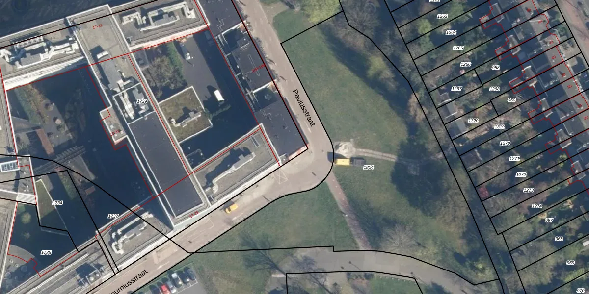 Het perceel waarop Paviusstraat 136 staat heeft een oppervlakte van 6065 m². Dit is een zeer groot perceel. De perceeloppervlakte wordt geregistreerd door het Kadaster. Gedetailleerde informatie over de maten van dit perceel kunt u vinden in het rapport Kadastrale kaart met maatvoering van Paviusstraat 136.