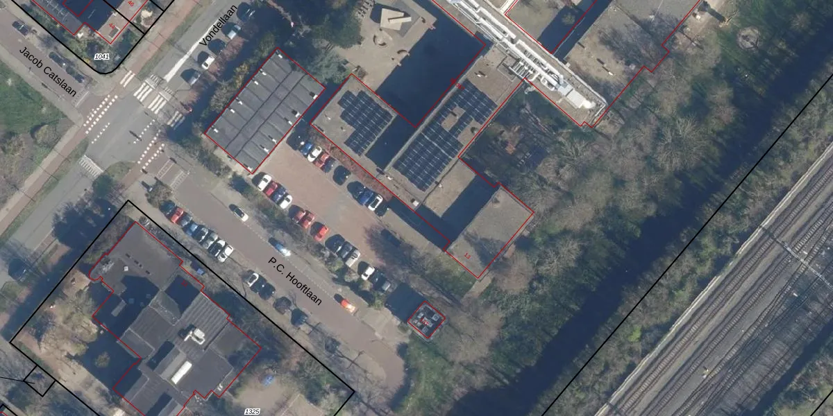 Het perceel waarop P.C. Hooftlaan 13 staat heeft een oppervlakte van 11,3 ha. Dit is een zeer groot perceel. De perceeloppervlakte wordt geregistreerd door het Kadaster. Gedetailleerde informatie over de maten van dit perceel kunt u vinden in het rapport Kadastrale kaart met maatvoering van P.C. Hooftlaan 13.
