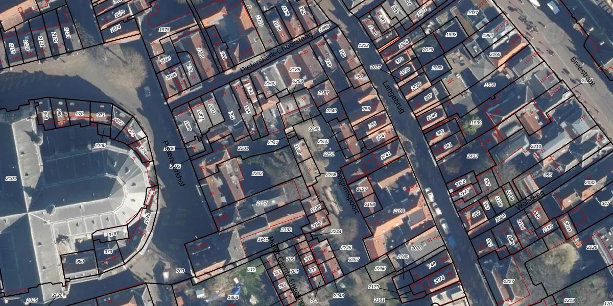 Het perceel waarop Pelgrimspoort 8 staat heeft een oppervlakte van 40 m². Dit is een klein perceel. De perceeloppervlakte wordt geregistreerd door het Kadaster. Gedetailleerde informatie over de maten van dit perceel kunt u vinden in het rapport Kadastrale kaart met maatvoering van Pelgrimspoort 8.