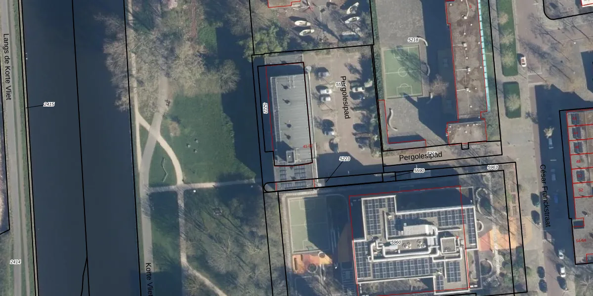 Pergolesipad 57 is gelegen op kadastraal perceel LDN01O5222. Deze kadastrale aanduiding is uniek en wordt gebruikt door het Kadaster om eigendomsrechten en andere zakelijke rechten vast te leggen. Het perceel maakt onderdeel uit van de kadastrale gemeente Leiden.