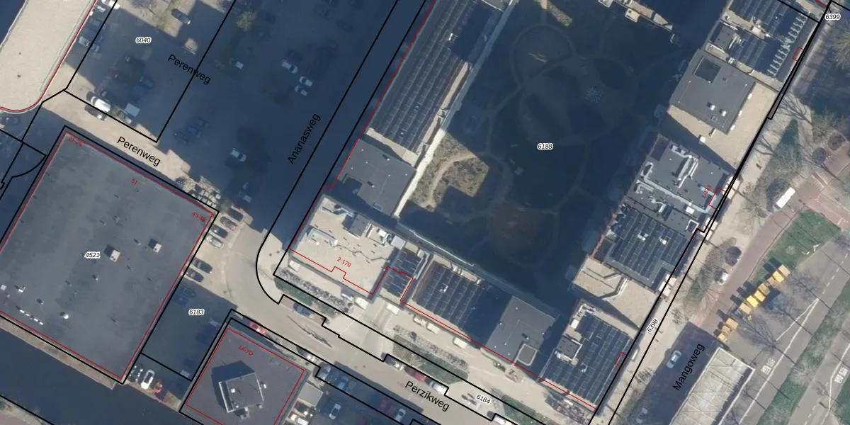 Het perceel waarop het adres ligt is LDN01-O-6188. De afkorting 'LDN01' staat voor kadastrale gemeente Leiden. De oppervlakte van het perceel is 9449 m². Dat is groter dan gemiddeld in Leiden, waar de gemiddelde perceeloppervlakte op 703,99 m² ligt. Het kleinste perceel in de kadastrale gemeente is 0 m² groot. De grootste perceeloppervlakte is 51,8 ha. Op het perceel zijn 388 adressen aanwezig. In de Basisregistratie Kadaster (BRK) werden de grenzen van het perceel geregistreerd op 05-09-2024.