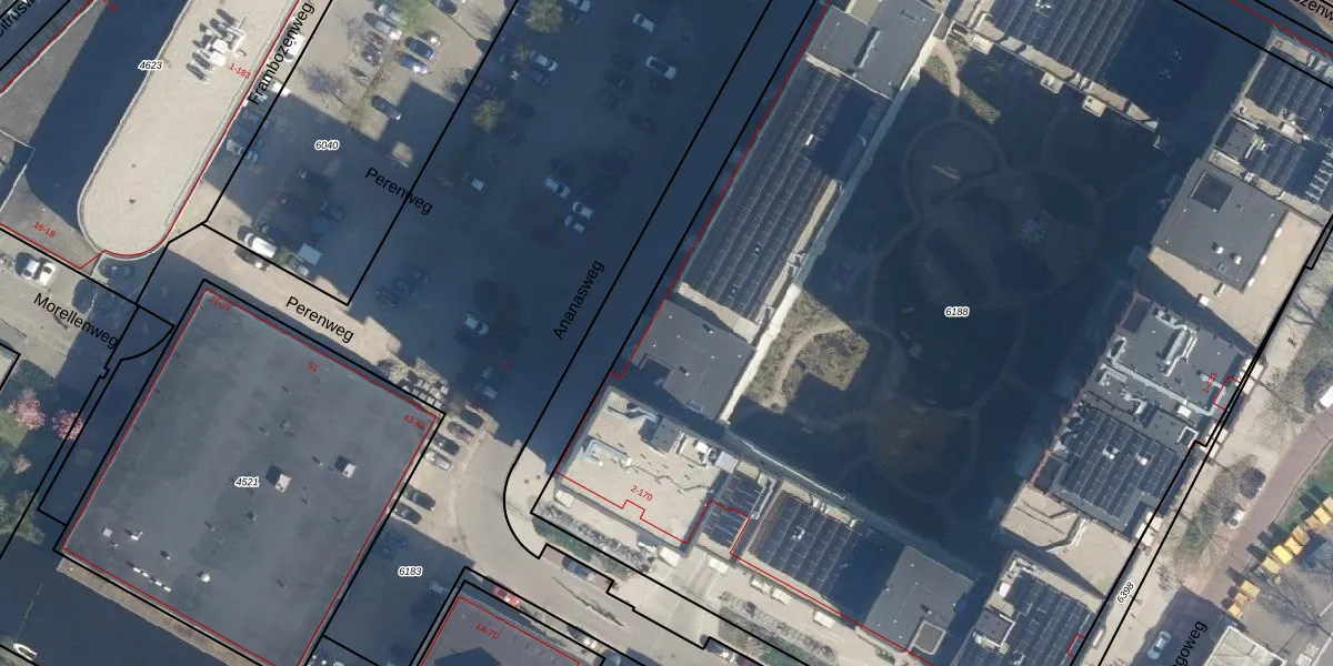Het perceel waarop het adres ligt is LDN01-O-6188. De afkorting 'LDN01' staat voor kadastrale gemeente Leiden. De oppervlakte van het perceel is 9449 m². Dat is groter dan gemiddeld in Leiden, waar de gemiddelde perceeloppervlakte op 703,99 m² ligt. Het kleinste perceel in de kadastrale gemeente is 0 m² groot. De grootste perceeloppervlakte is 51,8 ha. Op het perceel liggen in totaal 388 adressen. In de Basisregistratie Kadaster (BRK) werden de grenzen van het perceel geregistreerd op 05-09-2024.