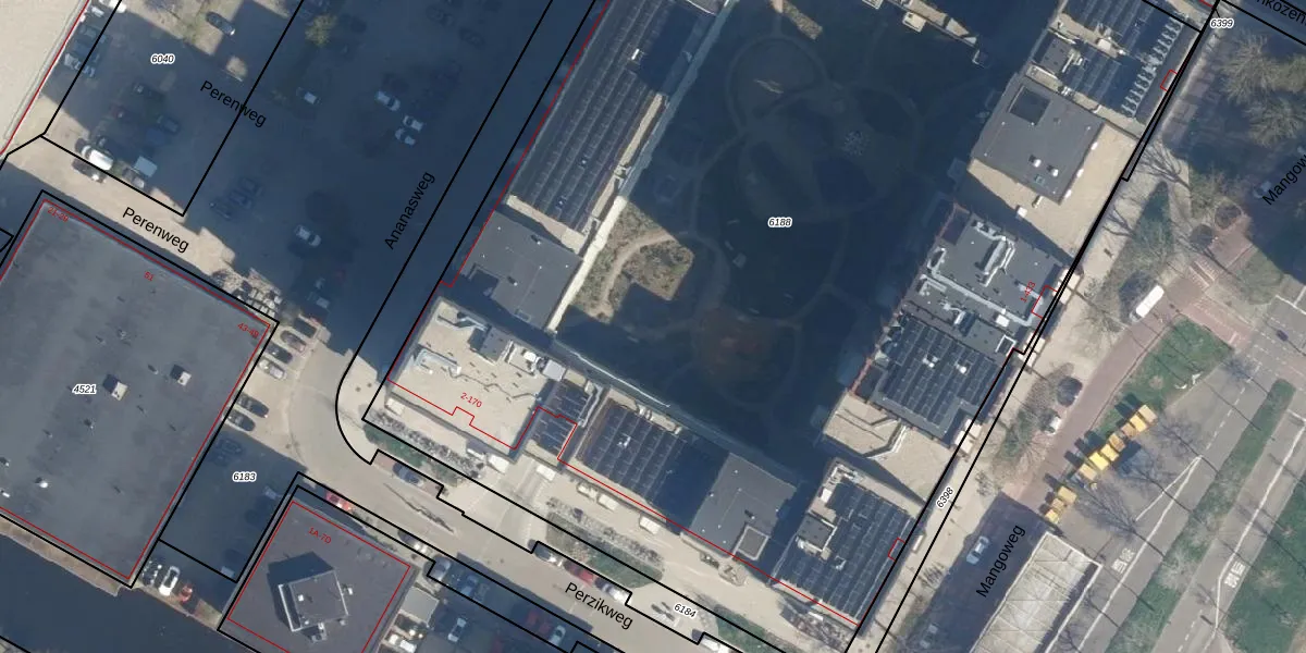 Het perceel waarop het adres ligt is LDN01-O-6188. De afkorting 'LDN01' staat voor kadastrale gemeente Leiden. De oppervlakte van het perceel is 9449 m². Dat is groter dan gemiddeld in Leiden, waar de gemiddelde perceeloppervlakte op 703,99 m² ligt. Het kleinste perceel in de kadastrale gemeente is 0 m² groot. De grootste perceeloppervlakte is 51,8 ha. Op het perceel liggen in totaal 388 adressen. In de Basisregistratie Kadaster (BRK) werden de grenzen van het perceel geregistreerd op 05-09-2024.