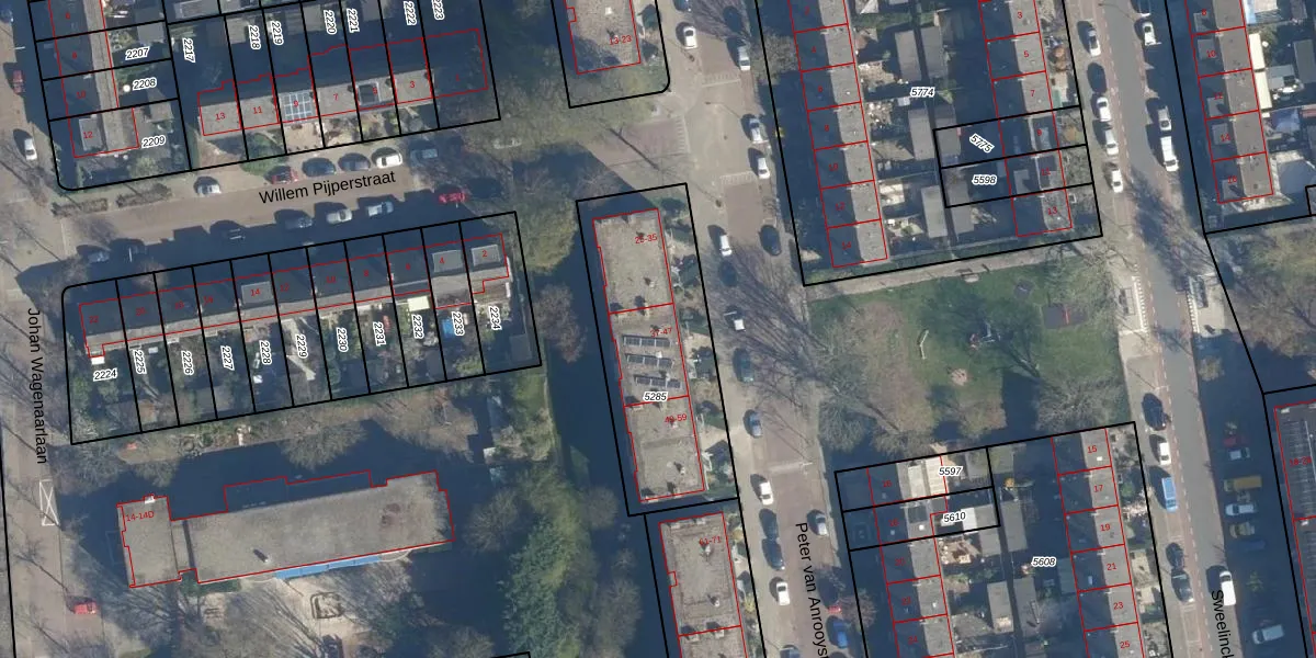 Peter van Anrooystraat 39 is gelegen op kadastraal perceel LDN01O5285. Deze kadastrale aanduiding is uniek en wordt gebruikt door het Kadaster om eigendomsrechten en andere zakelijke rechten vast te leggen. Het perceel maakt onderdeel uit van de kadastrale gemeente Leiden.