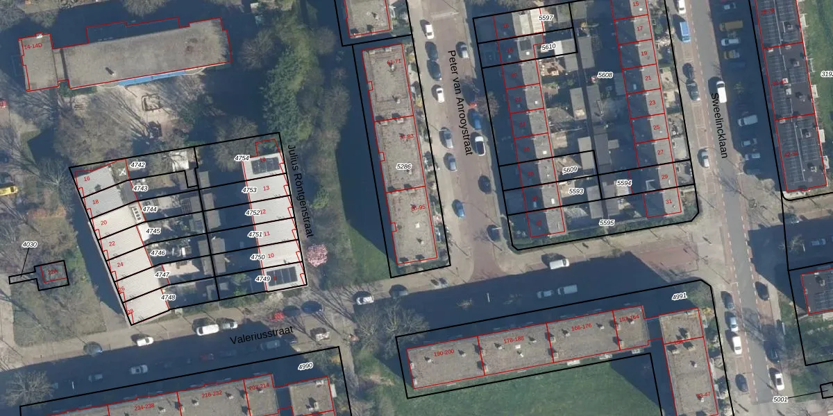 Peter van Anrooystraat 87 is gelegen op kadastraal perceel LDN01O5286. Deze kadastrale aanduiding is uniek en wordt gebruikt door het Kadaster om eigendomsrechten en andere zakelijke rechten vast te leggen. Het perceel maakt onderdeel uit van de kadastrale gemeente Leiden.