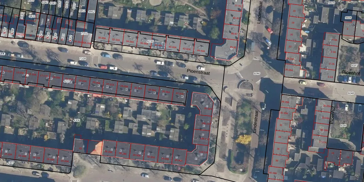 Het perceel waarop Pioenstraat 37 staat heeft een oppervlakte van 1019 m². Dit is een zeer groot perceel. De perceeloppervlakte wordt geregistreerd door het Kadaster. Gedetailleerde informatie over de maten van dit perceel kunt u vinden in het rapport Kadastrale kaart met maatvoering van Pioenstraat 37.