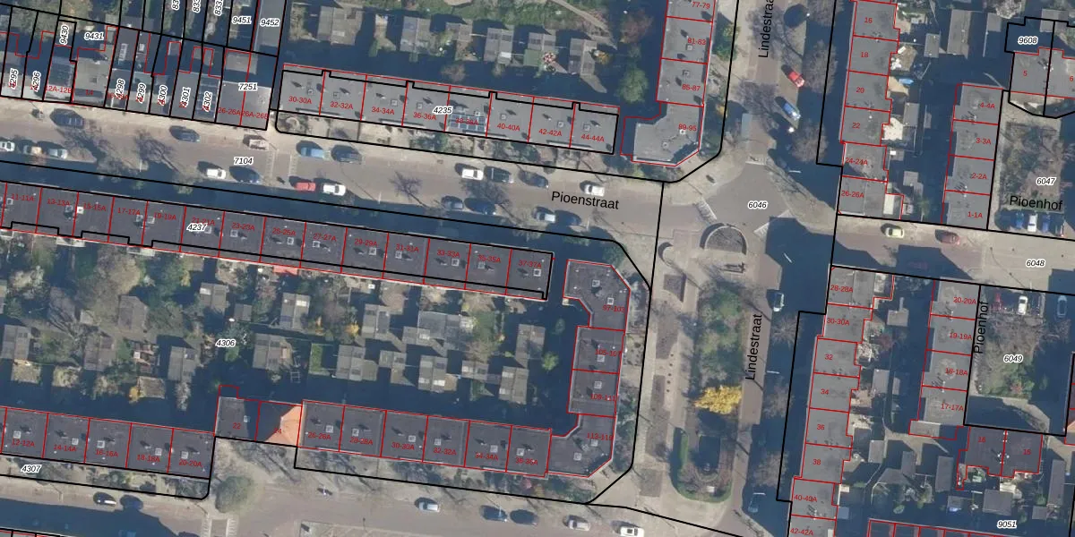 Pioenstraat 37-A is gelegen op kadastraal perceel LDN01M4237. Deze kadastrale aanduiding is uniek en wordt gebruikt door het Kadaster om eigendomsrechten en andere zakelijke rechten vast te leggen. Het perceel maakt onderdeel uit van de kadastrale gemeente Leiden.