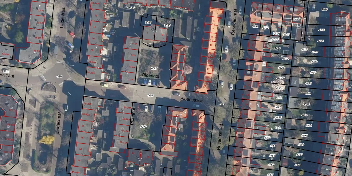 Pioenstraat 46 is gelegen op kadastraal perceel LDN01M9609. Deze kadastrale aanduiding is uniek en wordt gebruikt door het Kadaster om eigendomsrechten en andere zakelijke rechten vast te leggen. Het perceel maakt onderdeel uit van de kadastrale gemeente Leiden.