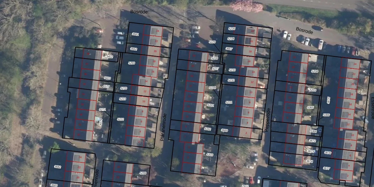 Platanenrode 15 is gelegen op kadastraal perceel LDN01S5331. Deze kadastrale aanduiding is uniek en wordt gebruikt door het Kadaster om eigendomsrechten en andere zakelijke rechten vast te leggen. Het perceel maakt onderdeel uit van de kadastrale gemeente Leiden.