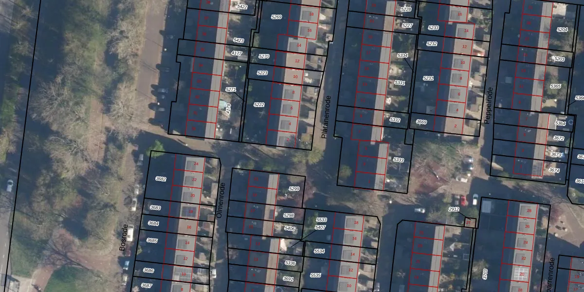 Platanenrode 2 is gelegen op kadastraal perceel LDN01S5222. Deze kadastrale aanduiding is uniek en wordt gebruikt door het Kadaster om eigendomsrechten en andere zakelijke rechten vast te leggen. Het perceel maakt onderdeel uit van de kadastrale gemeente Leiden.