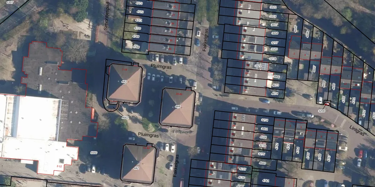 Pluimgras 19 is gelegen op kadastraal perceel LDN01S444. Deze kadastrale aanduiding is uniek en wordt gebruikt door het Kadaster om eigendomsrechten en andere zakelijke rechten vast te leggen. Het perceel maakt onderdeel uit van de kadastrale gemeente Leiden.