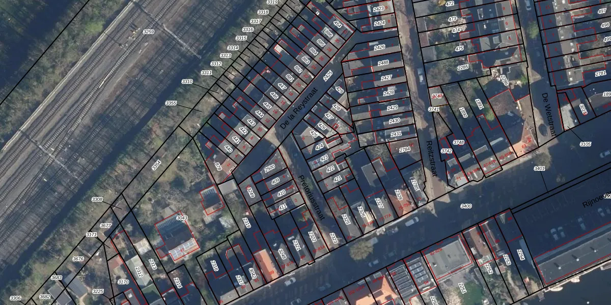 Het perceel waarop Pretoriusstraat 7 staat heeft een oppervlakte van 48 m². Dit is een klein perceel. De perceeloppervlakte wordt geregistreerd door het Kadaster. Gedetailleerde informatie over de maten van dit perceel kunt u vinden in het rapport Kadastrale kaart met maatvoering van Pretoriusstraat 7.