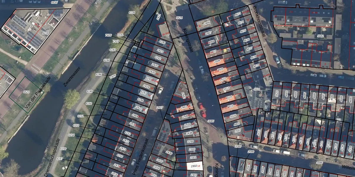 Prins Frederikstraat 21 is gelegen op kadastraal perceel LDN01K2442. Deze kadastrale aanduiding is uniek en wordt gebruikt door het Kadaster om eigendomsrechten en andere zakelijke rechten vast te leggen. Het perceel maakt onderdeel uit van de kadastrale gemeente Leiden.