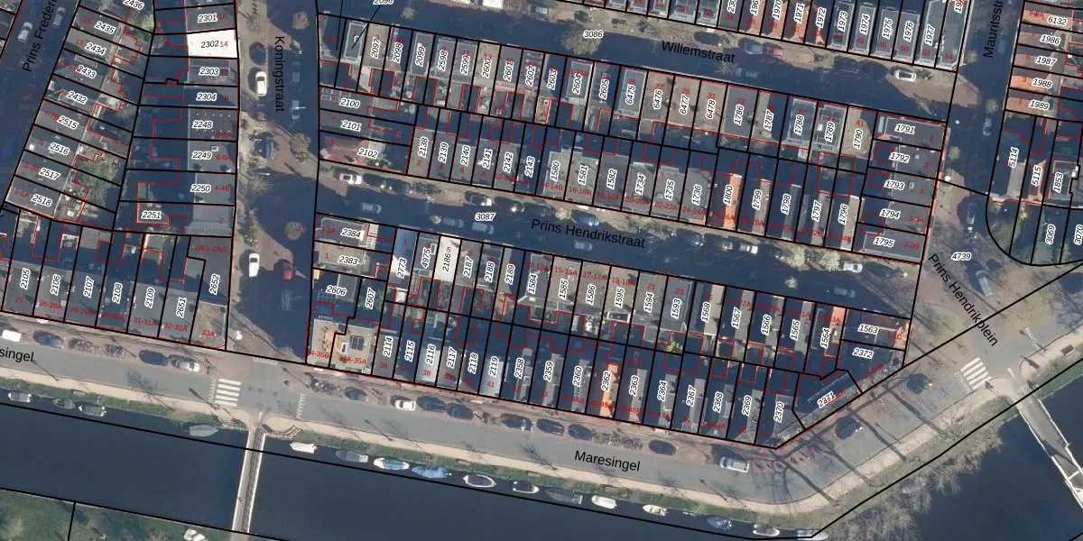 Prins Hendrikstraat 13-A is gelegen op kadastraal perceel LDN01K1584. Deze kadastrale aanduiding is uniek en wordt gebruikt door het Kadaster om eigendomsrechten en andere zakelijke rechten vast te leggen. Het perceel maakt onderdeel uit van de kadastrale gemeente Leiden.