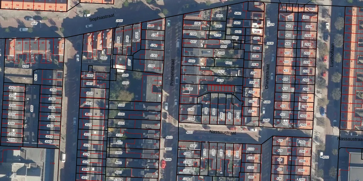 Het perceel waarop Prinsenstraat 76 staat heeft een oppervlakte van 218 m². Dit is een middelgroot perceel. De perceeloppervlakte wordt geregistreerd door het Kadaster. Gedetailleerde informatie over de maten van dit perceel kunt u vinden in het rapport Kadastrale kaart met maatvoering van Prinsenstraat 76.