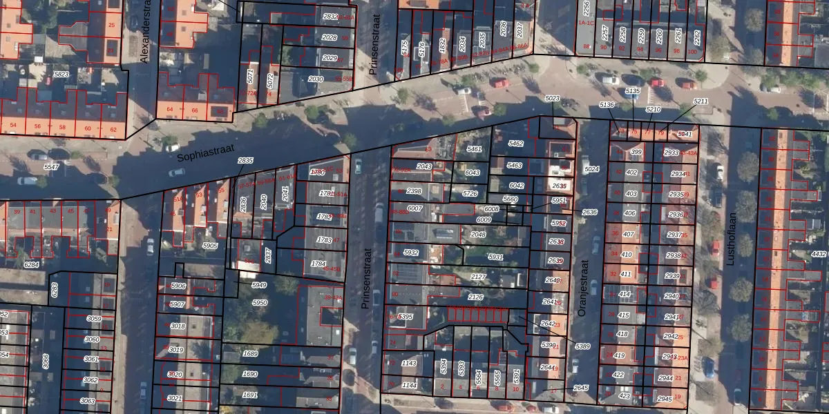 Het perceel waarop Prinsenstraat 88 staat heeft een oppervlakte van 129 m². Dit is een middelgroot perceel. De perceeloppervlakte wordt geregistreerd door het Kadaster. Gedetailleerde informatie over de maten van dit perceel kunt u vinden in het rapport Kadastrale kaart met maatvoering van Prinsenstraat 88.