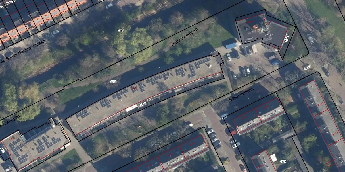 Professorenpad 59 is gelegen op kadastraal perceel LDN01Q1577. Deze kadastrale aanduiding is uniek en wordt gebruikt door het Kadaster om eigendomsrechten en andere zakelijke rechten vast te leggen. Het perceel maakt onderdeel uit van de kadastrale gemeente Leiden.