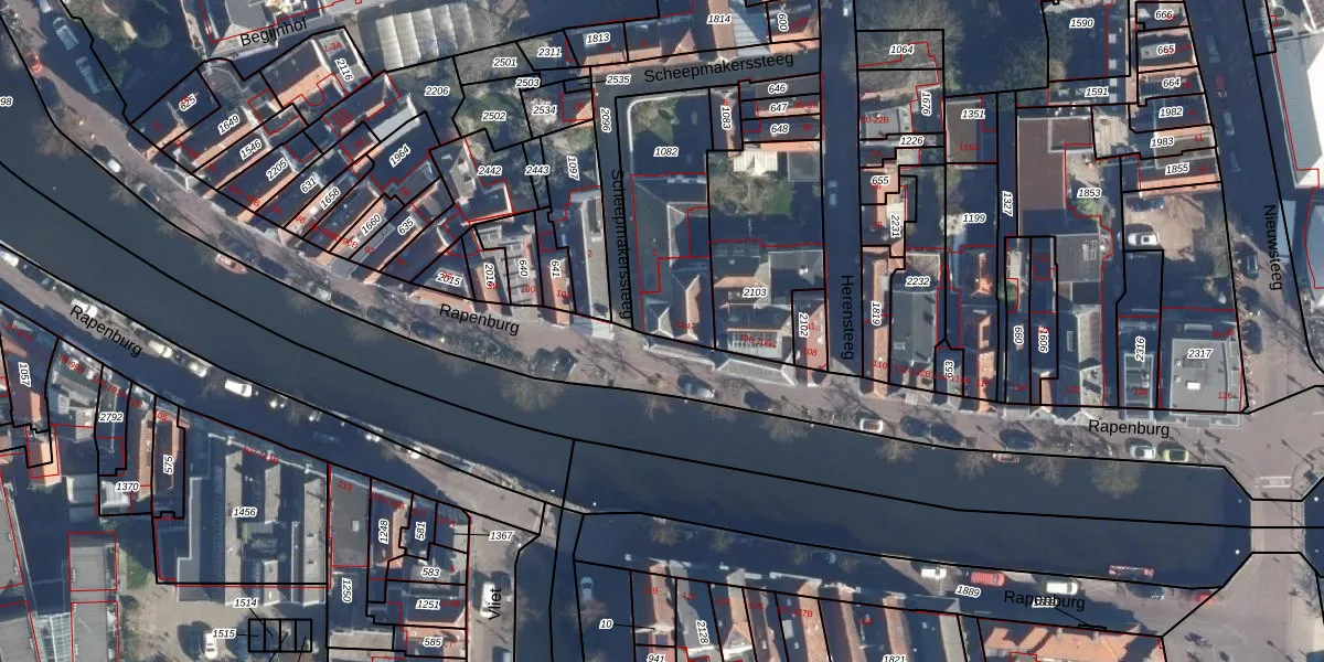 Het perceel waarop Rapenburg 104 staat heeft een oppervlakte van 478 m². Dit is een groot perceel. De perceeloppervlakte wordt geregistreerd door het Kadaster. Gedetailleerde informatie over de maten van dit perceel kunt u vinden in het rapport Kadastrale kaart met maatvoering van Rapenburg 104.