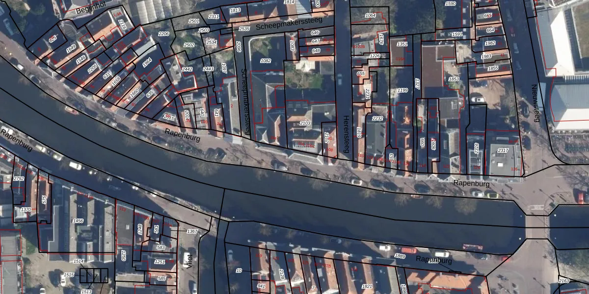 Het perceel waarop Rapenburg 106 staat heeft een oppervlakte van 497 m². Dit is een groot perceel. De perceeloppervlakte wordt geregistreerd door het Kadaster. Gedetailleerde informatie over de maten van dit perceel kunt u vinden in het rapport Kadastrale kaart met maatvoering van Rapenburg 106.