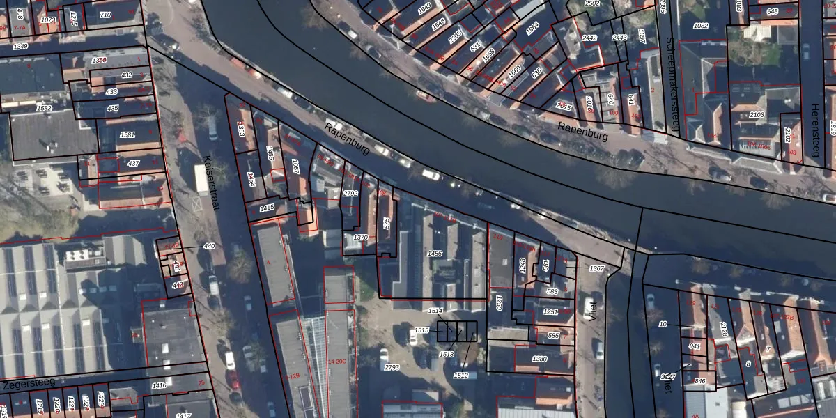 Het perceel waarop Rapenburg 109 staat heeft een oppervlakte van 511 m². Dit is een groot perceel. De perceeloppervlakte wordt geregistreerd door het Kadaster. Gedetailleerde informatie over de maten van dit perceel kunt u vinden in het rapport Kadastrale kaart met maatvoering van Rapenburg 109.