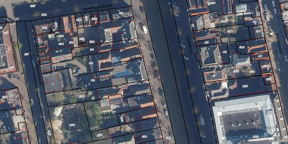 Het perceel waarop Rapenburg 33 staat heeft een oppervlakte van 970 m². Dit is een groot perceel. De perceeloppervlakte wordt geregistreerd door het Kadaster. Gedetailleerde informatie over de maten van dit perceel kunt u vinden in het rapport Kadastrale kaart met maatvoering van Rapenburg 33.