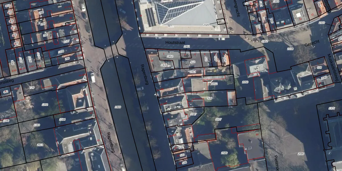 Het perceel waarop Rapenburg 34-A staat heeft een oppervlakte van 433 m². Dit is een groot perceel. De perceeloppervlakte wordt geregistreerd door het Kadaster. Gedetailleerde informatie over de maten van dit perceel kunt u vinden in het rapport Kadastrale kaart met maatvoering van Rapenburg 34-A.