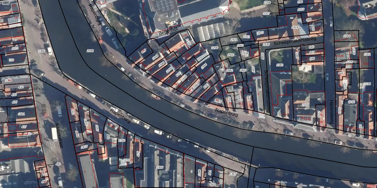 Het perceel waarop Rapenburg 90 staat heeft een oppervlakte van 39 m². Dit is een klein perceel. De perceeloppervlakte wordt geregistreerd door het Kadaster. Gedetailleerde informatie over de maten van dit perceel kunt u vinden in het rapport Kadastrale kaart met maatvoering van Rapenburg 90.