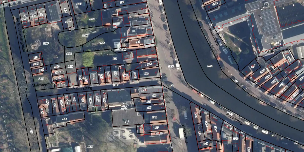 Het perceel waarop Rapenburg 91 staat heeft een oppervlakte van 81 m². Dit is een klein perceel. De perceeloppervlakte wordt geregistreerd door het Kadaster. Gedetailleerde informatie over de maten van dit perceel kunt u vinden in het rapport Kadastrale kaart met maatvoering van Rapenburg 91.