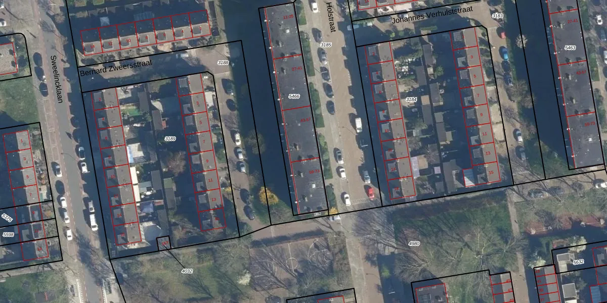 Het perceel waarop Richard Holstraat 55 staat heeft een oppervlakte van 816 m². Dit is een groot perceel. De perceeloppervlakte wordt geregistreerd door het Kadaster. Gedetailleerde informatie over de maten van dit perceel kunt u vinden in het rapport Kadastrale kaart met maatvoering van Richard Holstraat 55.