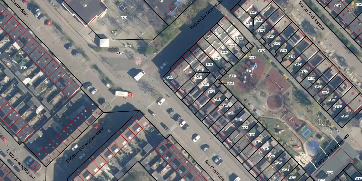 Rie Cramerlaan 39 is gelegen op kadastraal perceel LDN01W5491. Deze kadastrale aanduiding is uniek en wordt gebruikt door het Kadaster om eigendomsrechten en andere zakelijke rechten vast te leggen. Het perceel maakt onderdeel uit van de kadastrale gemeente Leiden.