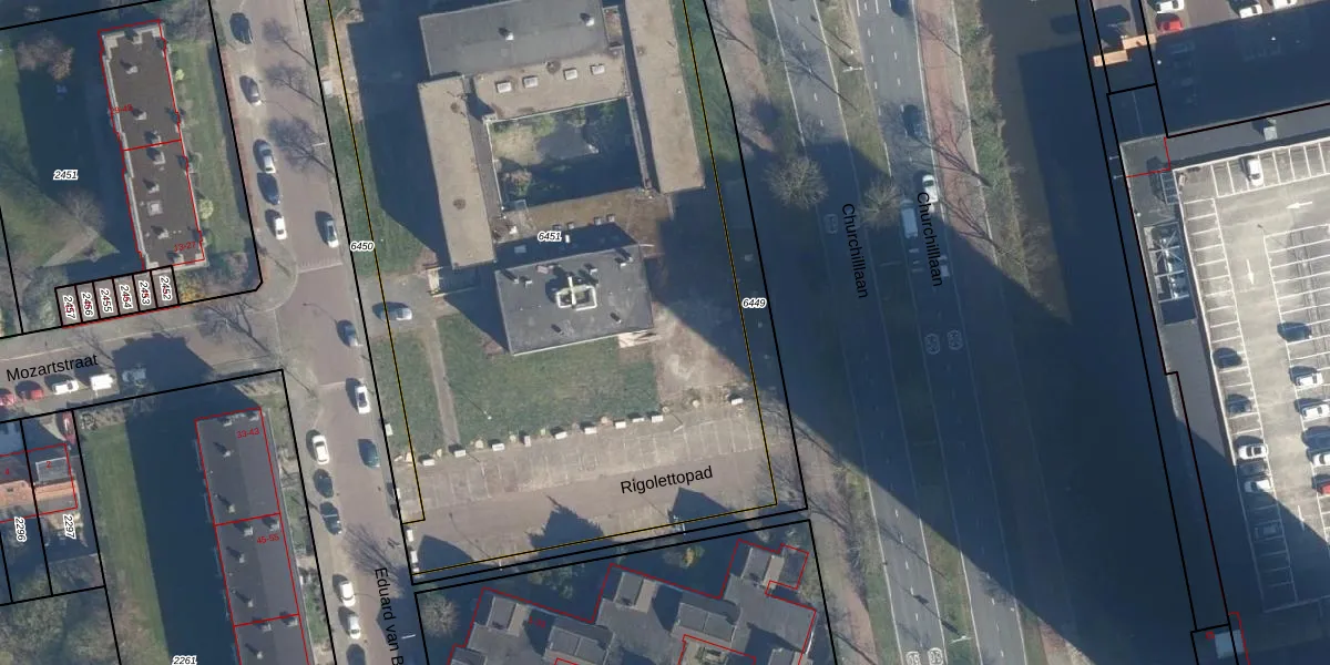 Het adres is gelegen op perceel 6451 in de sectie O en de kadastrale gemeente Leiden. De kadastrale aanduiding is aldus LDN01-O-6451. De gemiddelde perceeloppervlakte in de kadastrale gemeente Leiden is 703,94 m². Dit perceel is met zijn 4873 m² dus groter dan gemiddeld. De grootste perceeloppervlakte in de kadastrale gemeente is 51,8 ha. De kleinste oppervlakte bedraagt 0 m². Op het perceel liggen in totaal 366 adressen. In de Basisregistratie Kadaster (BRK) werden de grenzen van het perceel geregistreerd op 24-02-2026.