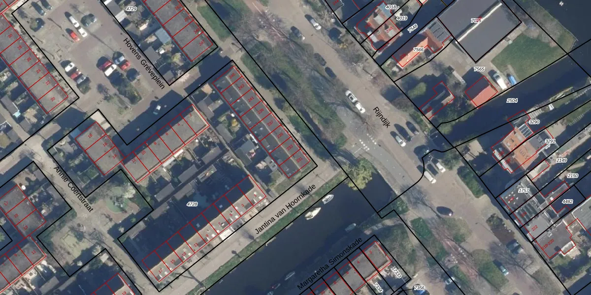 Het perceel waarop Rijndijk 233 staat heeft een oppervlakte van 3238 m². Dit is een zeer groot perceel. De perceeloppervlakte wordt geregistreerd door het Kadaster. Gedetailleerde informatie over de maten van dit perceel kunt u vinden in het rapport Kadastrale kaart met maatvoering van Rijndijk 233.