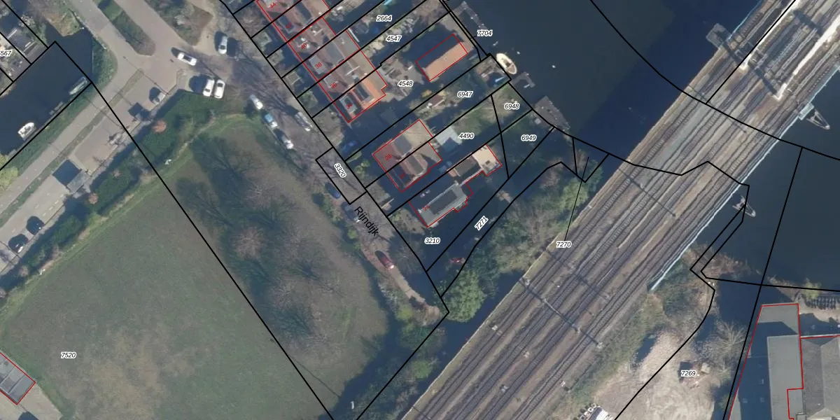 Rijndijk 24 is gelegen op kadastraal perceel LDN01W3210. Deze kadastrale aanduiding is uniek en wordt gebruikt door het Kadaster om eigendomsrechten en andere zakelijke rechten vast te leggen. Het perceel maakt onderdeel uit van de kadastrale gemeente Leiden.